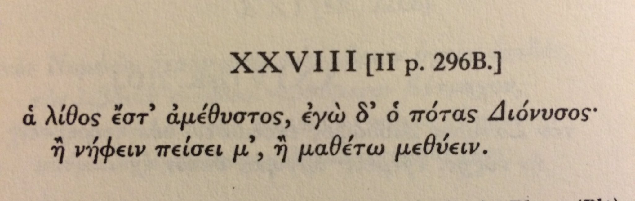 λυσσαλέης ἀμέθυστον ἀλεξήτειραν ἀνάγκης.